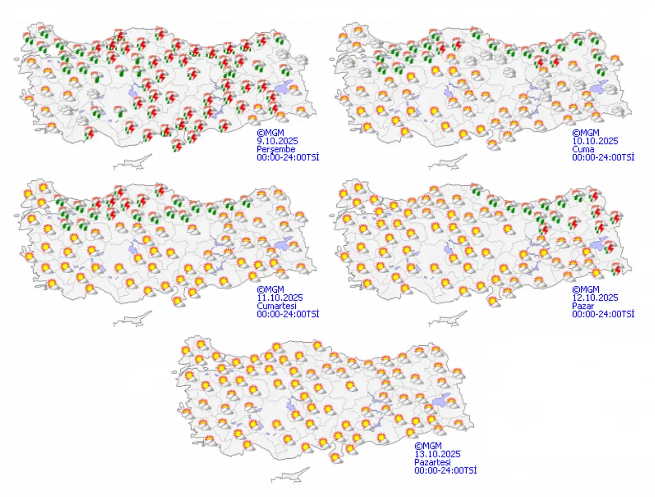 Meteoroloji yetkilileri, gökgürültülü sağanak yağışın görüleceği Perşembe günü ani yağış ve rüzgar riskine karşı dikkatli olunmasını tavsiye etti. Hafta genelinde sıcaklıklar mevsim normalleri civarında seyredecek.