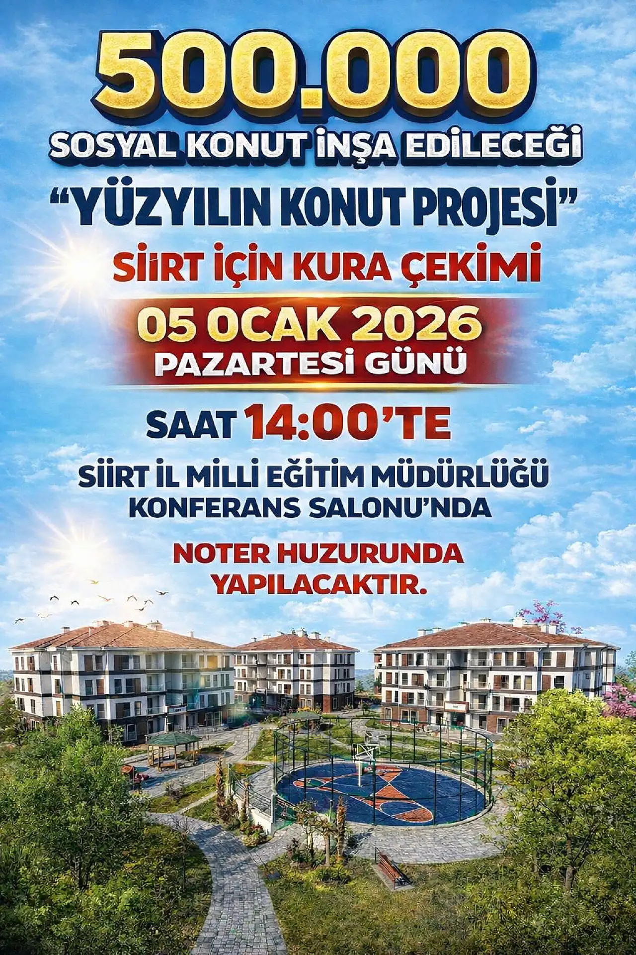 - Siirt'te 500 Bin Sosyal Konut Kurasının Yapılacağı Yer ve Saat Açıklandı