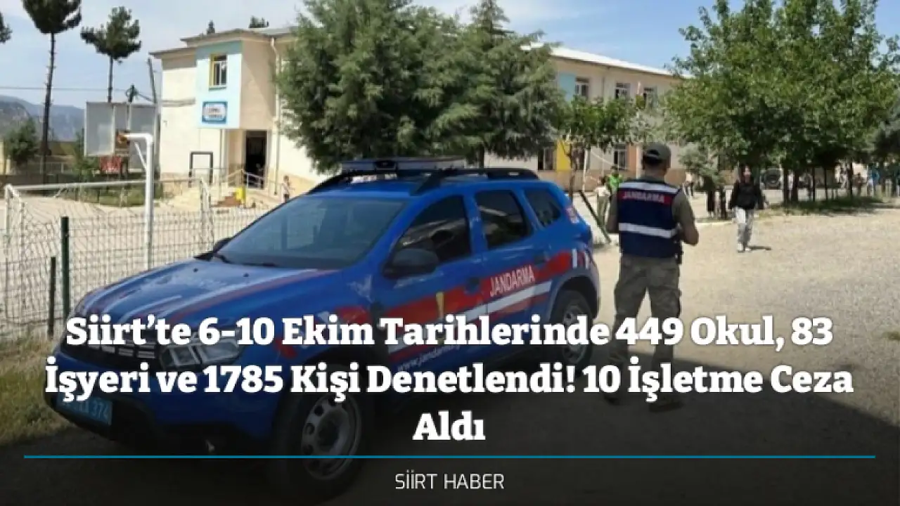 - Siirt'te 6-10 Ekim Tarihlerinde 449 Okul, 83 İşyeri ve 1785 Kişi Denetlendi! 10 İşletme Ceza Aldı