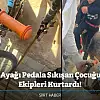Siirt'in Veysel Karani Mahallesi'nde bisiklet sürerken ayağı pedala sıkışan 11 yaşındaki Samet Sevtekin, itfaiye ve sağlık ekiplerinin zamanında müdahalesiyle kurtarıldı. Küçük çocuğun sağlık durumunun iyi olduğu öğrenildi.