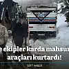 Siirt'te ekipler karda mahsur kalan araçları kurtardı!