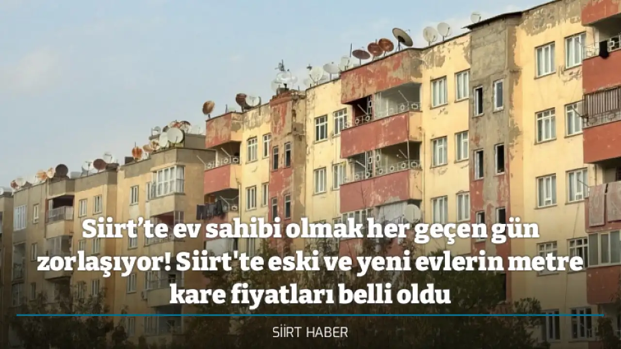 - Siirt'te ev sahibi olmak her geçen gün zorlaşıyor! Siirt'te eski ve yeni evlerin metre kare fiyatları belli oldu