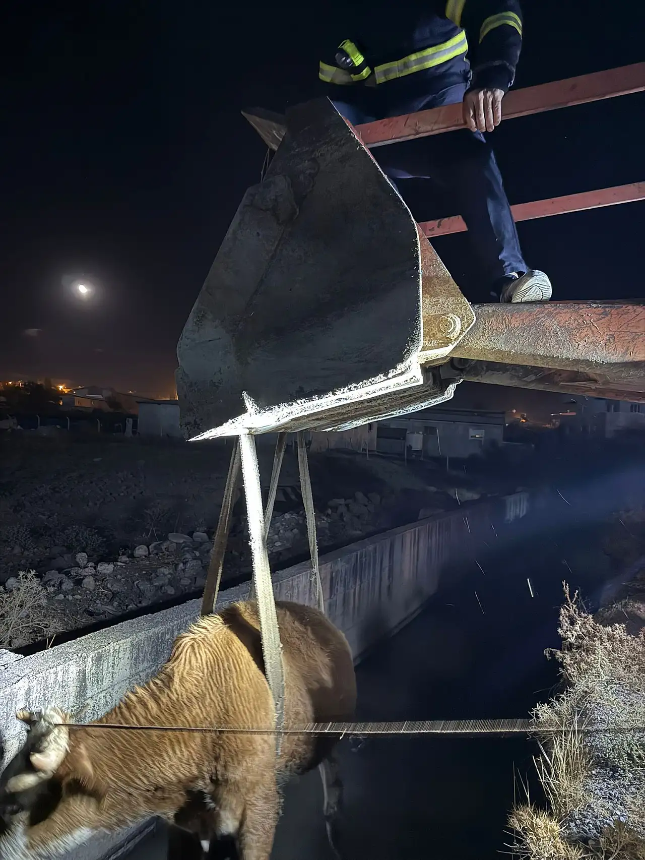 - Siirt'te 2 Metrelik Kanala Düşen İneği Kepçe ve Halatla Kurtardılar