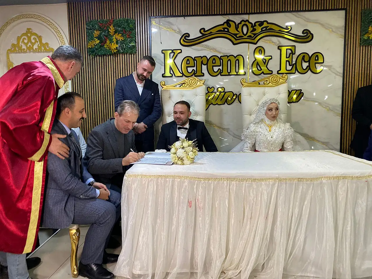 Siirt'te düzenlenen nikâh töreniyle Merve ve Burak dünyaevine girerken, protokol üyelerinin de katıldığı merasimde Işıktaş ve Harman ailelerinin mutluluğu paylaşıldı.