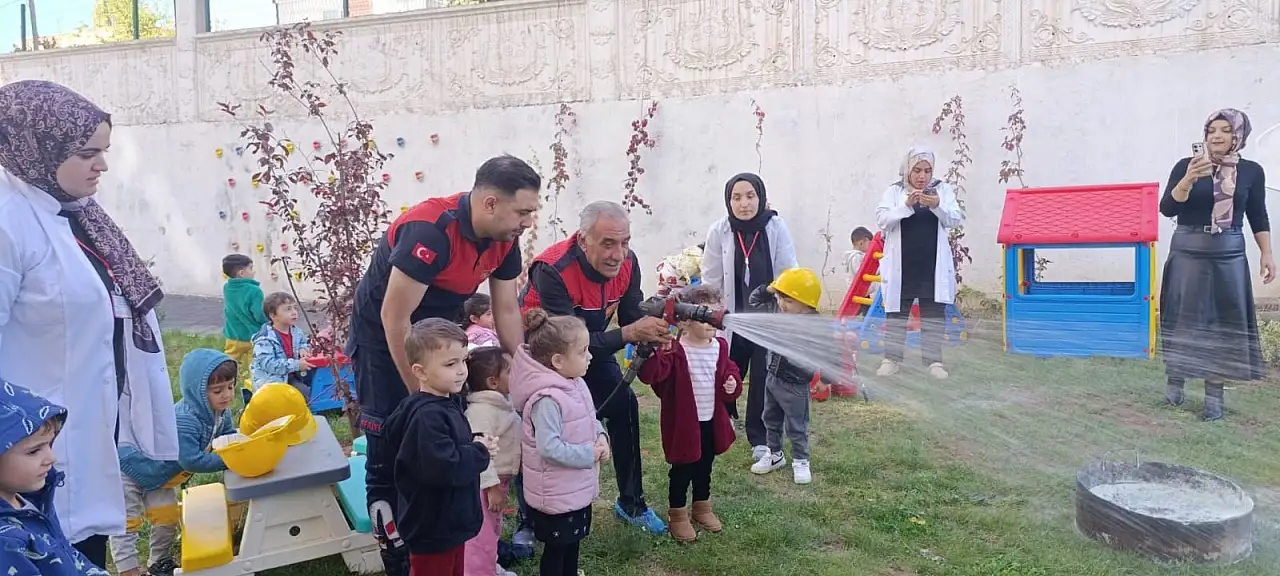 Etkinlik kapsamında minik öğrenciler, yangın anında yapılması gerekenleri öğrendi, itfaiye araçlarını yakından tanıdı ve yangın güvenliği konusunda bilinç kazandı.