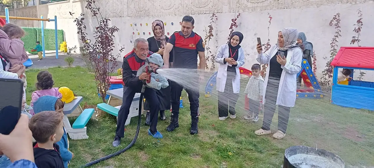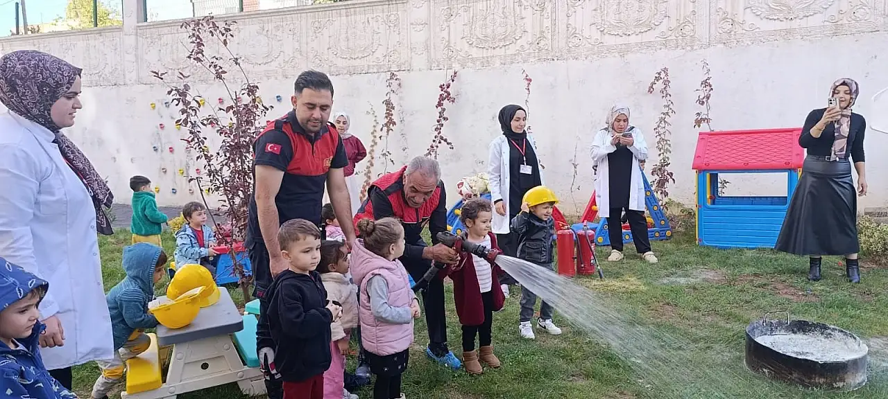 Etkinlik, kreş bahçesinde gerçekleştirilen yangın tatbikatı ile sona erdi.