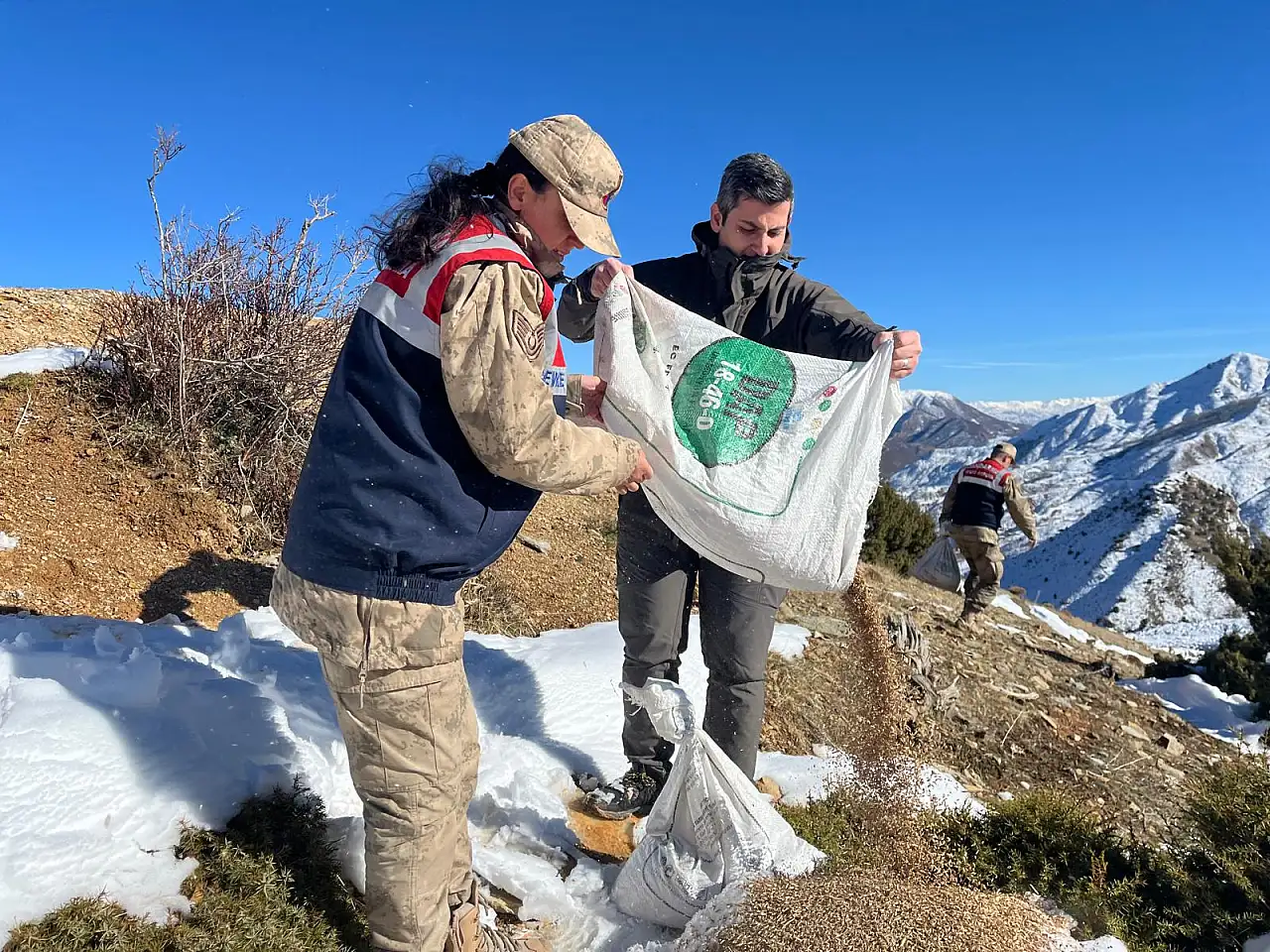 Siirt'te kar altında kalan yaban hayvanlarına 750 kilogramlık yaşam desteği