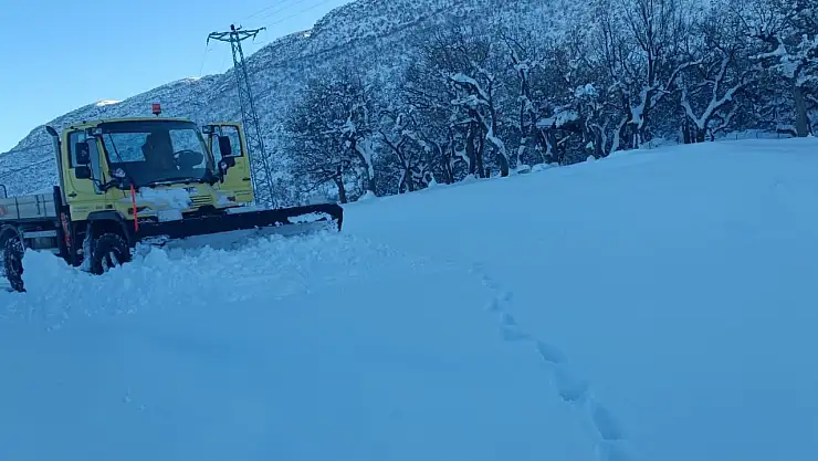 Kapanan yolların yeniden ulaşıma açılması için İl Özel İdaresi ekiplerinin karla mücadele çalışmalarını aralıksız sürdürdüğü bildirildi.