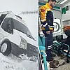 Zorlu hava koşullarına rağmen çalışmalarını sürdüren ekipler, bir yandan yolları ulaşıma açık tutarken diğer yandan acil durumlarda vatandaşların imdadına yetişiyor.