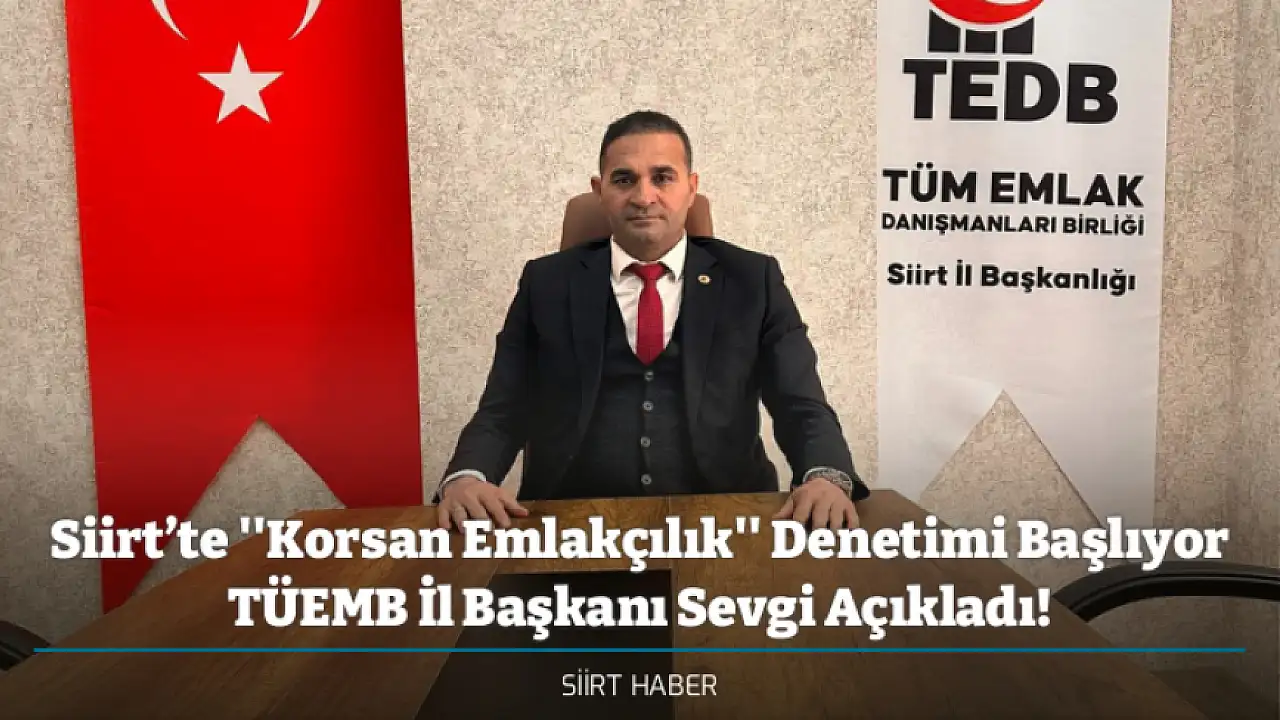 Siirt'te son dönemde hızla artan korsan emlakçılık faaliyetleri üzerine kapsamlı bir denetim çalışması başlatılıyor. Tüm Emlak Danışmanları Birliği (TÜEMB) Siirt İl Başkanı Ömer Faruk Sevgi, kayıt dışı şekilde emlakçılık yapan kişilerin hem vatandaşları hem de devleti ciddi zarara uğrattığını söyledi.