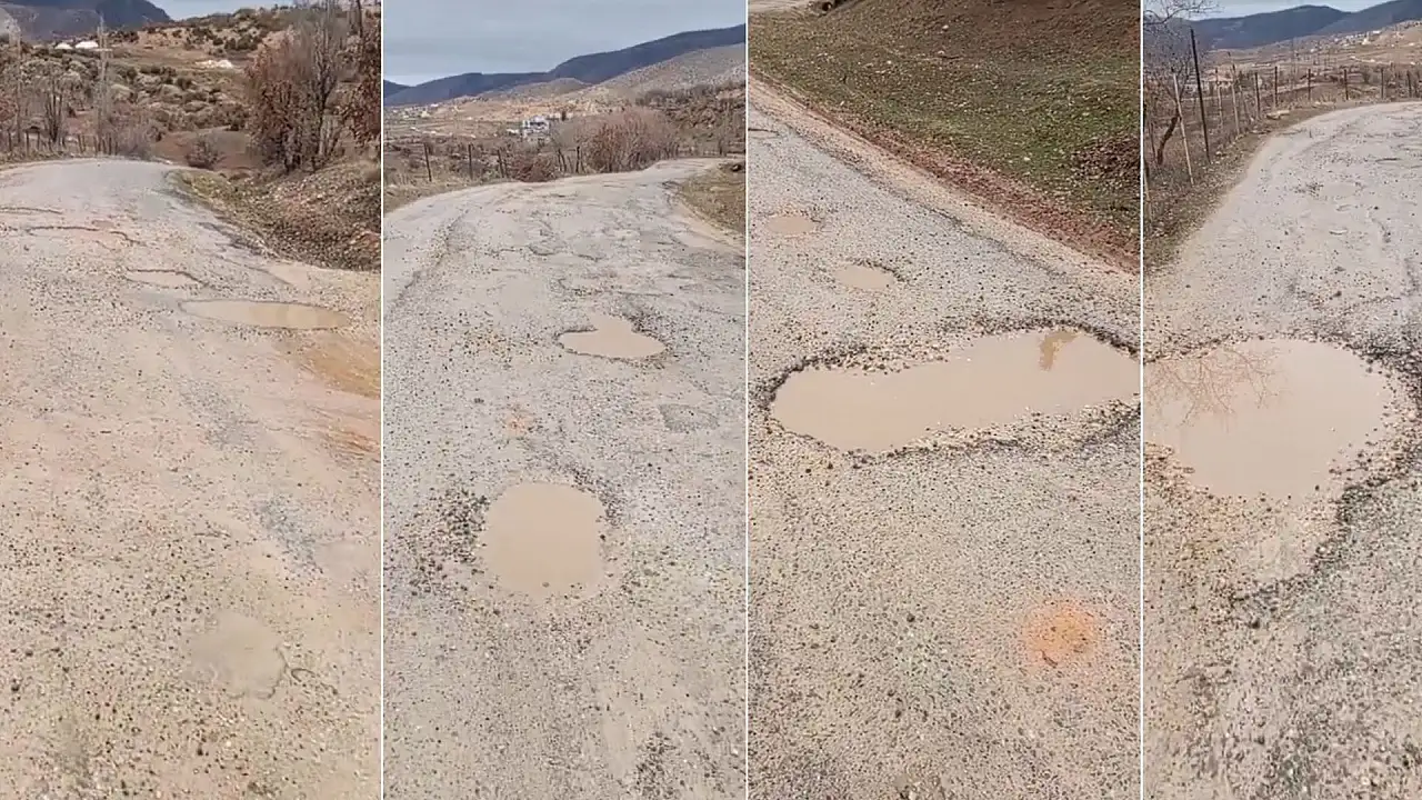 Bir vatandaş tarafından cep telefonu ile kaydedilen görüntülerde, yol boyunca çok sayıda çukurun bulunduğu, çukurların büyük bölümünün yağmur sularıyla dolu olduğu görülüyor. Sürücülerin ilerlemekte güçlük çektiği yolda araçlar zarar görme riskiyle karşı karşıya kalıyor.
