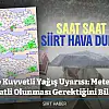 Meteoroloji Genel Müdürlüğü, Siirt ve çevresi için kuvvetli sağanak yağış uyarısında bulundu. Yapılan son değerlendirmelere göre, il genelinde bugün parçalı çok bulutlu, yer yer kuvvetli olmak üzere aralıklı sağanak ve gök gürültülü sağanak yağışlar bekleniyor.