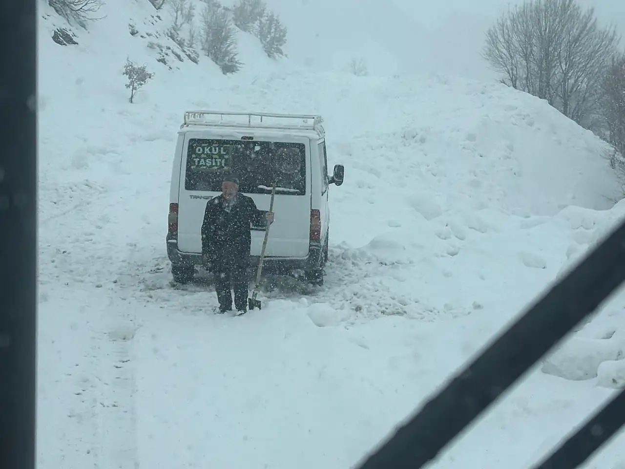 Siirt'in Şirvan ilçesinde kar ve tipi nedeniyle yolda kalan öğrenci servisi, İl Özel İdaresi ekiplerinin müdahalesiyle kurtarıldı.