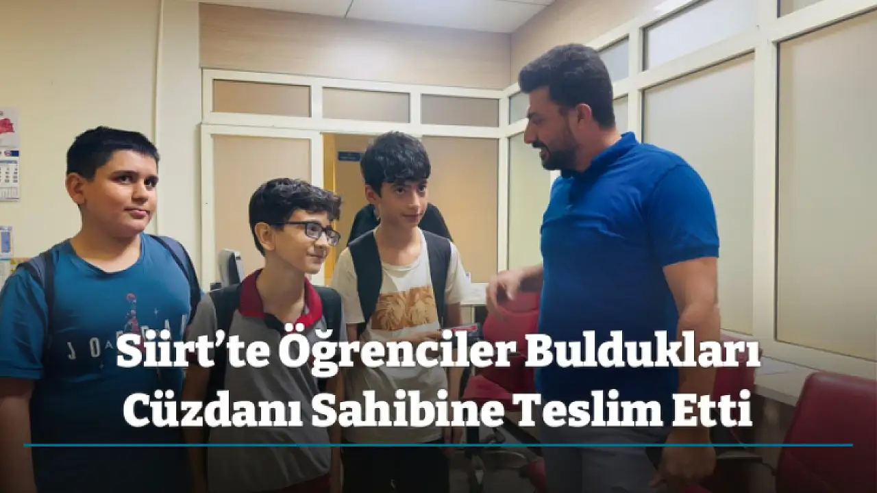 Merkez Fevzi Çakmak Ortaokulu 7. sınıf öğrencileri Bilal Kaya, Muhammed Sait Kaya ve Ömer Faruk Yağmahan, Halit Bin Velid Camisi’nde namaz kıldıkları sırada yerde bir cüzdan buldu. İçinde bir miktar para ve kimlik bilgilerinin yer aldığı cüzdanın, Siirt Eğitim ve Araştırma Hastanesi çalışanı Mehmet Afif Bulgan’a ait olduğu anlaşıldı.