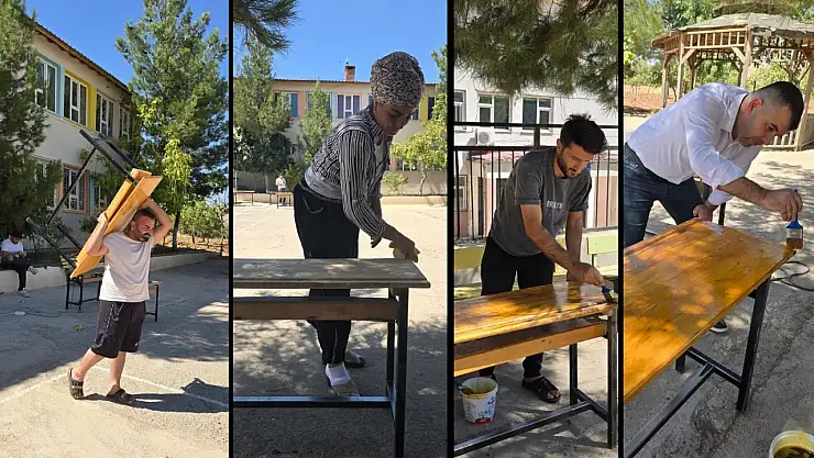 Okul Müdürü Fikret Keskin, Müdür Yardımcısı Harun Mızrak, sınıf öğretmeni İbrahim Özbay ve veli Nahide Demir, sınıfların boyanmasından tadilat işlerine kadar birçok çalışmaya gönüllü olarak katıldı.