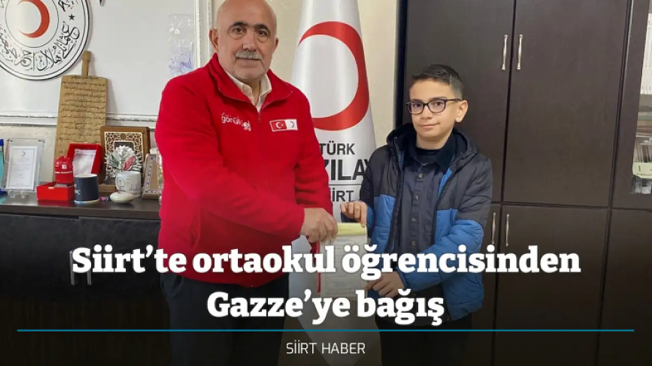 Siirt'te 80. Yıl Ortaokulu öğrencisi Muhammed Berat Zeybekoğlu, kumbarasında biriktirdiği harçlıkları Gazze'deki ihtiyaç sahipleri için bağışlayarak örnek bir davranış sergiledi.