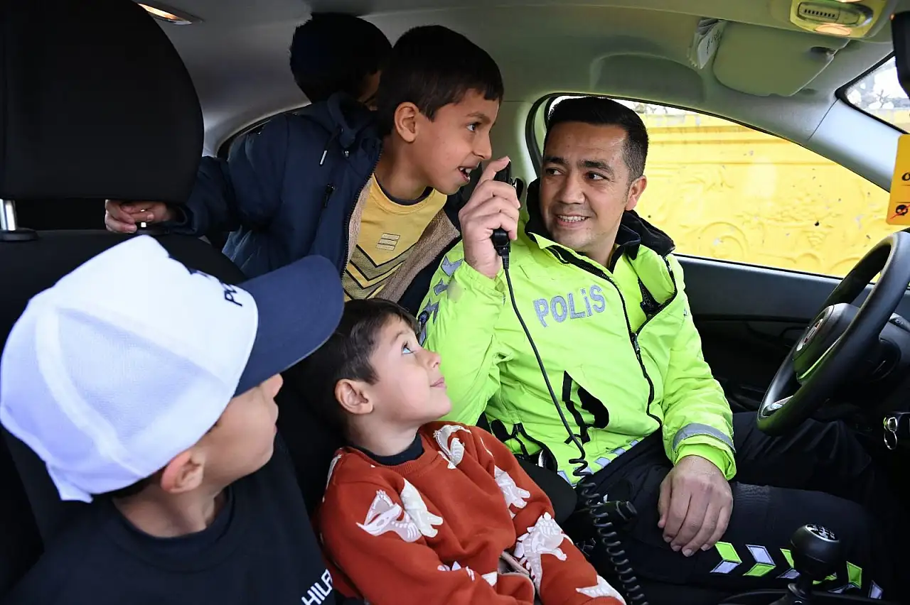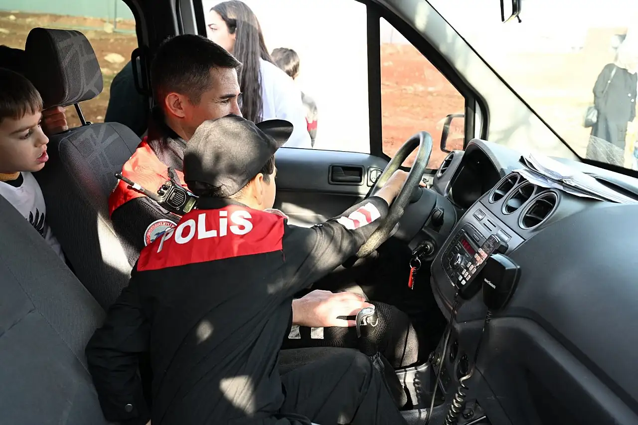Etkinliğin en dikkat çeken anlarından biri ise öğrencilerin polis araçlarını yakından incelemesi oldu. Trafik ve motosikletli polis araçlarına binme fırsatı bulan öğrencilerin yaşadığı mutluluk gözlerden kaçmadı.