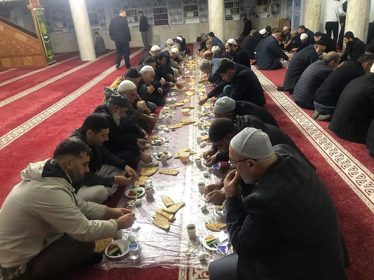 Ensar Camii'nde sabah namazı programı Kur'an tilaveti, zikir ve dualarla manevi bir atmosferde geçti. İmam Ramazan Toprak, çocuklara çikolata ikram etti ve cemaati her pazar etkinliğe davet etti.