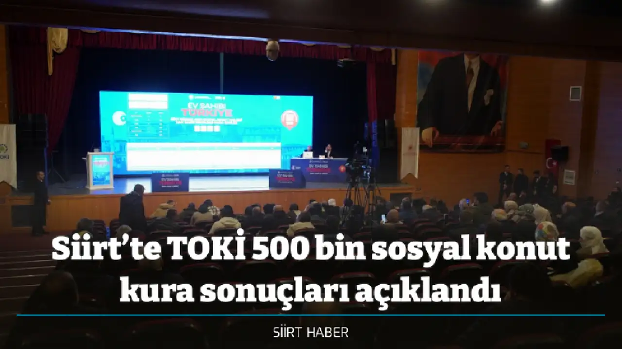 Siirt'te TOKİ 500 bin sosyal konut projesi kapsamında yapılan kura çekimi sonuçlandı. 5 Ocak 2026 tarihinde, Siirt İl Millî Eğitim Müdürlüğü Konferans Salonu'nda saat 14.00'te gerçekleştirilen kura çekimiyle birlikte asil ve yedek hak sahiplerinin isimleri belli oldu.