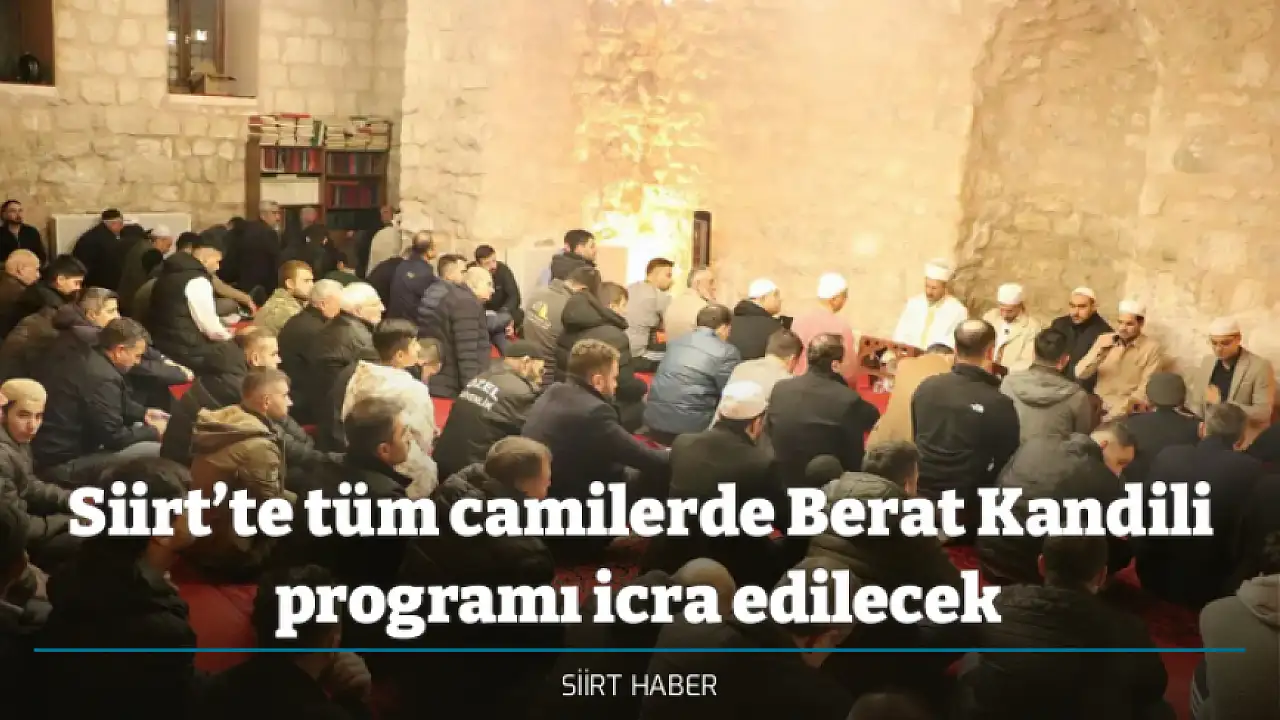 Siirt'te Berat Kandili dolayısıyla il genelindeki tüm camilerde Kur'an-ı Kerim tilaveti ve dua programları düzenlenecek.