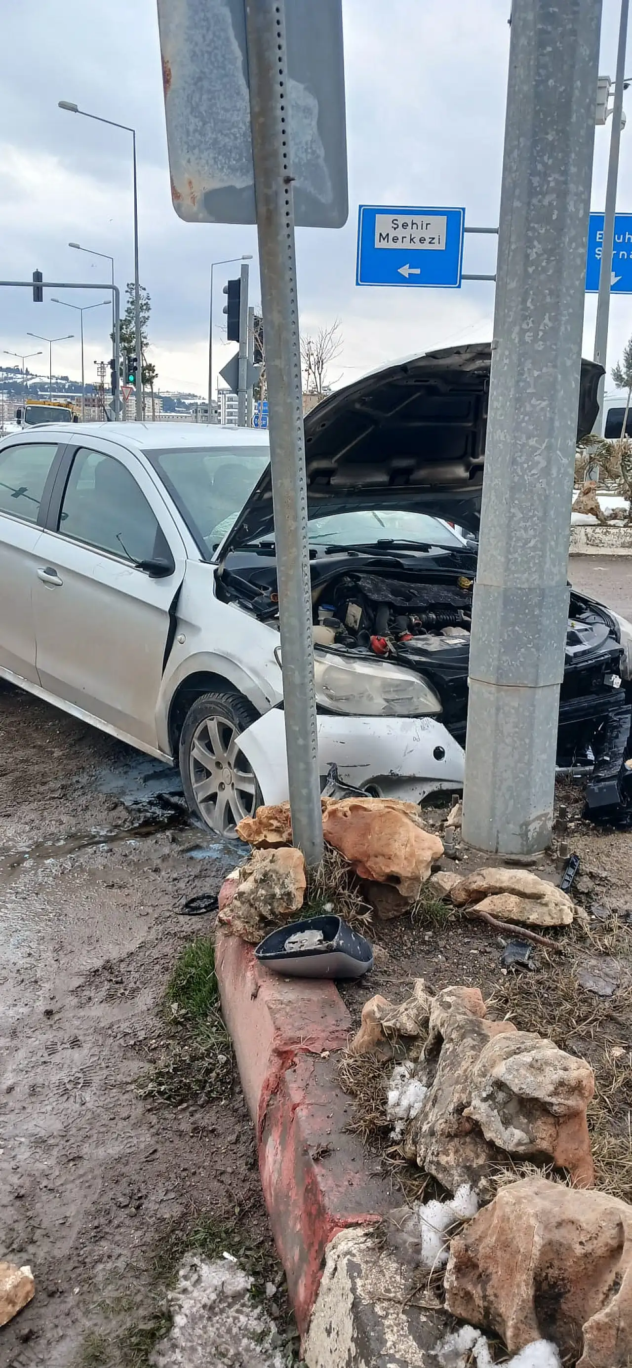 Siirt'te sürücü, karşıdan karşıya geçmeye çalışan yayalara çarpmamak için direksiyonu kırdı, refüje çarptı sürücü ve eşi hafif yaralandı.