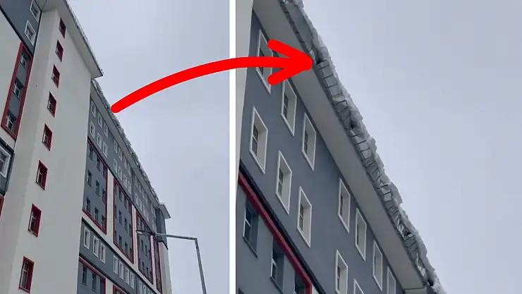 Henüz yapım aşamasında olduğu belirtilen yurtta saçakların eğildiği görülürken, olası kar kütlesi düşmelerine karşı önlem alınması gerektiği ifade edildi. Bölgeden geçen vatandaşlar, özellikle saçak altlarında oluşabilecek tehlikelere dikkat çekti.