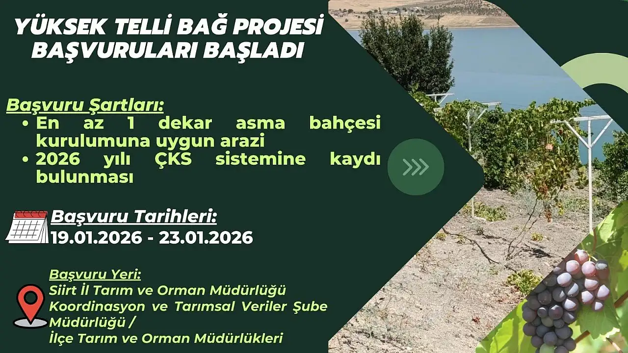 - Siirt'te Yüksek Telli Bağ Projesi Başvuruları Başladı! Son gün 23 Ocak 2026