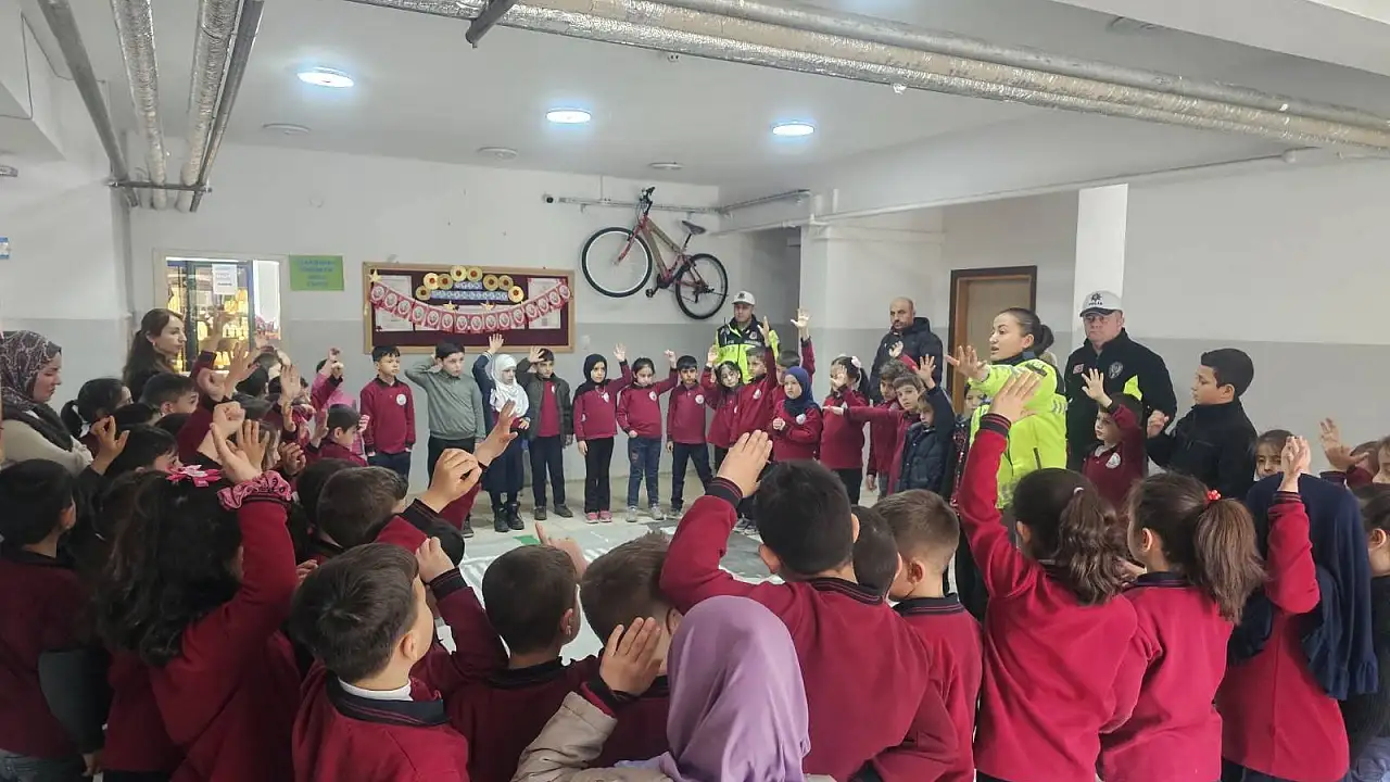 Yetkililer tarafından öğrencilere görsel materyaller eşliğinde ve uygulamalı olarak eğitim verilirken, trafik bilincinin küçük yaşta kazandırılmasının önemine dikkat çekildi.