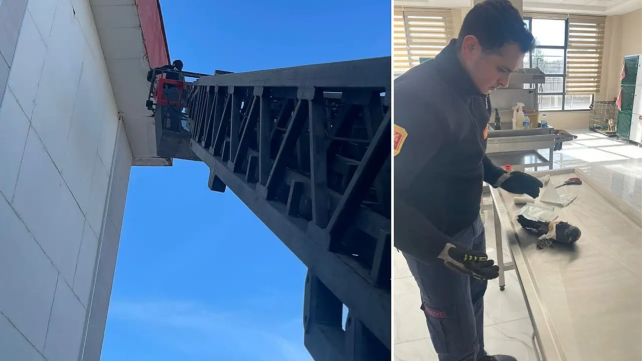 Siirt Üniversitesi'nde yaralı karga itfaiye ekiplerince kurtarıldı
