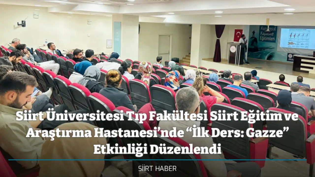 Siirt Üniversitesi Tıp Fakültesi, 'İlk Ders: Gazze' temalı etkinlikte Filistin'deki sağlık krizini ve insani durumu masaya yatırdı. Konuşmacılar, insanlık vicdanına dikkat çekerek, öğrencilerin evrensel değerlerle yetiştirilmesinin önemini vurguladı.
