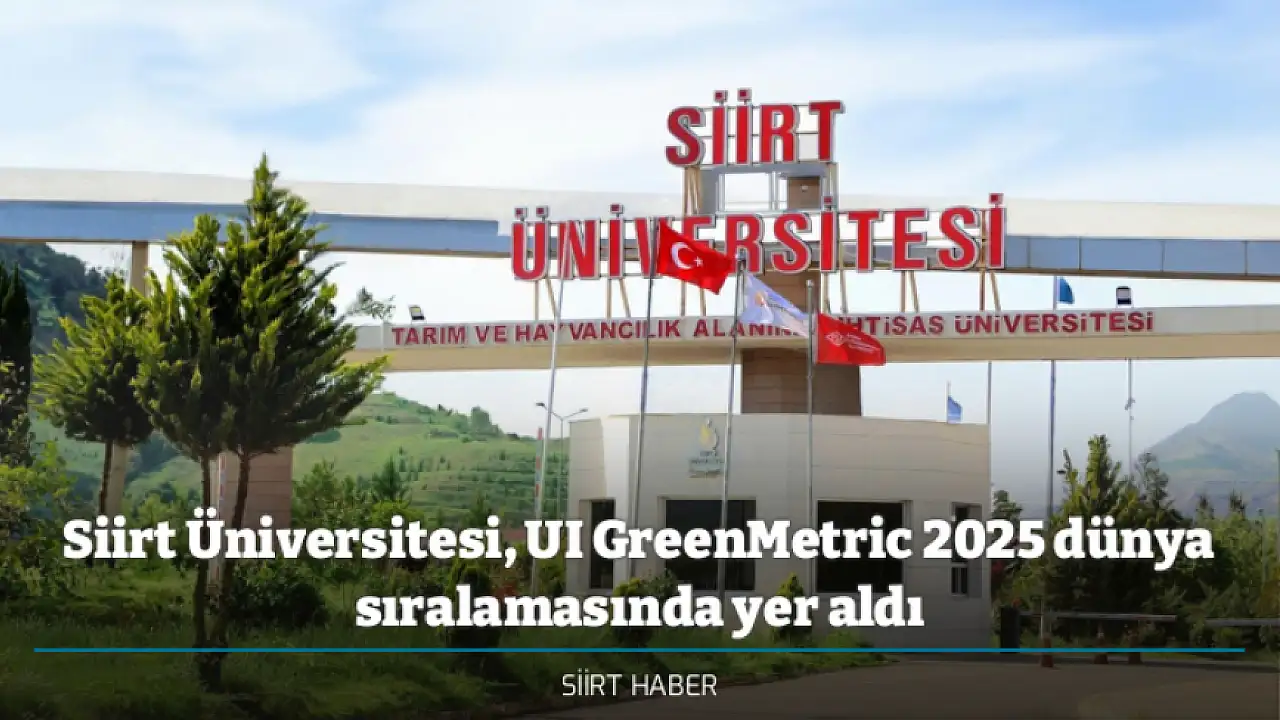 Siirt Üniversitesinin UI GreenMetric tarafından hazırlanan “World University Rankings 2025” değerlendirme sonuçları yayımlandı. Dünyanın en prestijli sürdürülebilirlik odaklı üniversite sıralamalarından biri olarak kabul edilen UI GreenMetric değerlendirmesi; üniversitelerin çevresel performanslarını “Yerleşke ve altyapı”, “Enerji ve iklim değişikliği”, “Atık yönetimi”, “Su yönetimi”, “Ulaşım” ile “Eğitim ve araştırma” başlıkları altında çok boyutlu olarak ele alıyor.