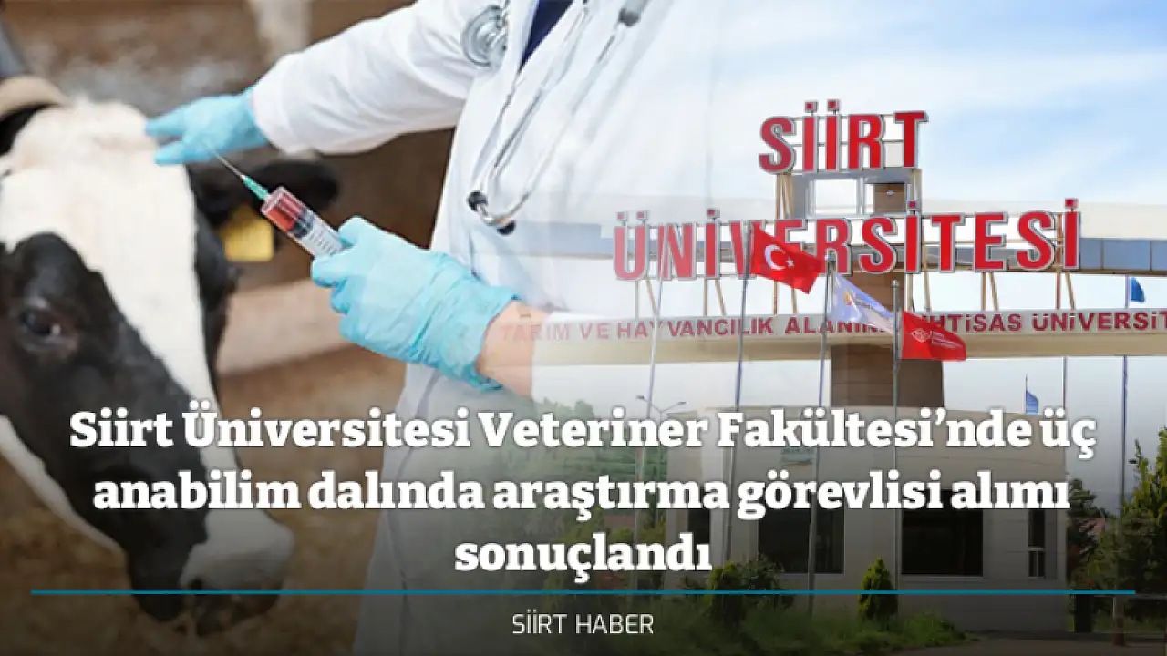 - Siirt Üniversitesi Veteriner Fakültesi'nde üç anabilim dalında araştırma görevlisi alımı sonuçlandı
