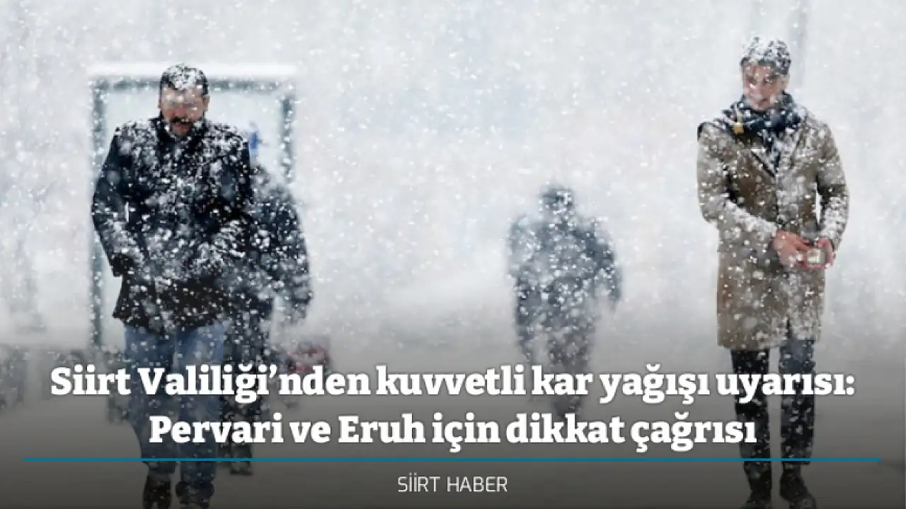 - Siirt Valiliği'nden kuvvetli kar yağışı uyarısı: Pervari ve Eruh için dikkat çağrısı