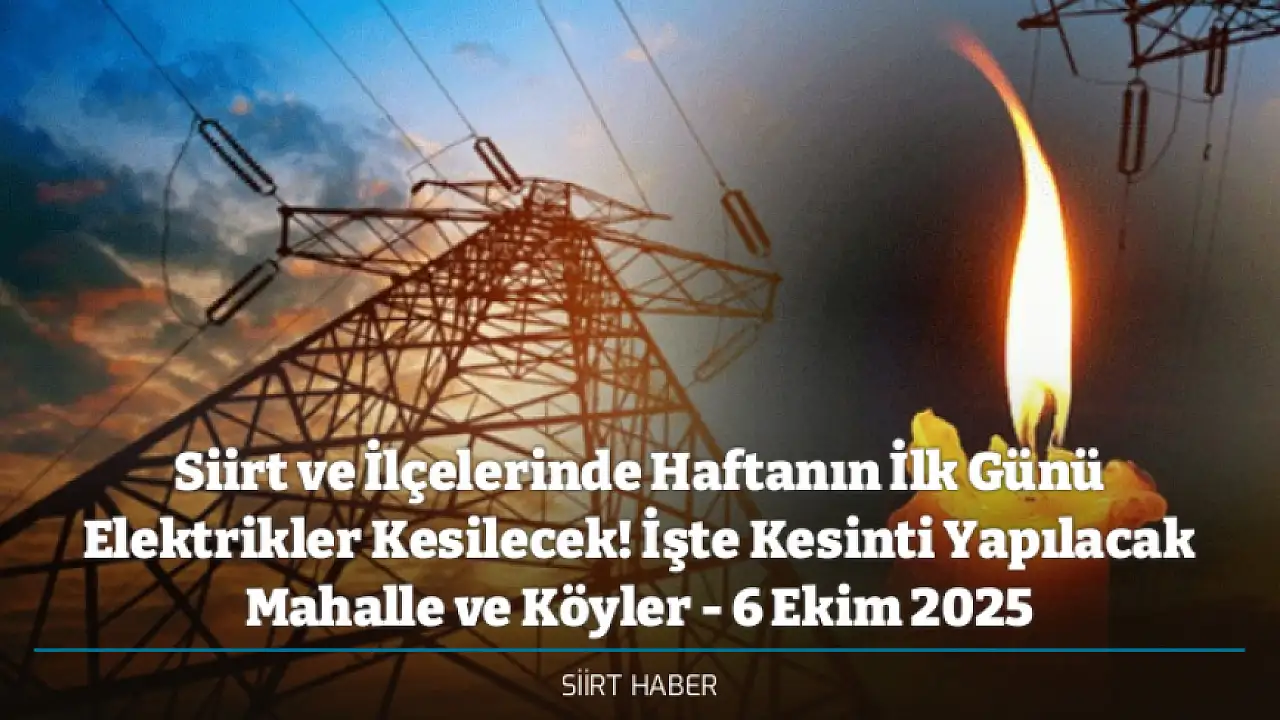 - Siirt ve İlçelerinde Haftanın İlk Günü Elektrikler Kesilecek! İşte Kesinti Yapılacak Mahalle ve Köyler - 6 Ekim 2025