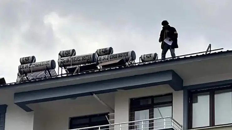 Durumdan haberdar olan vali yardımcısı Okan Yenidünya ile valilik özel kalem müdürü Fatih Küçükönder çatıya çıktı.