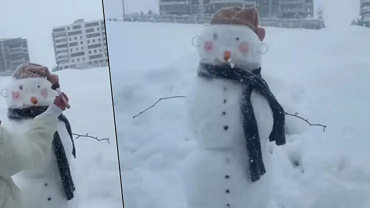 Sosyal medyada da ilgi gören kardan kadın, kentte kar yağışının oluşturduğu neşeli atmosferin sembollerinden biri oldu.