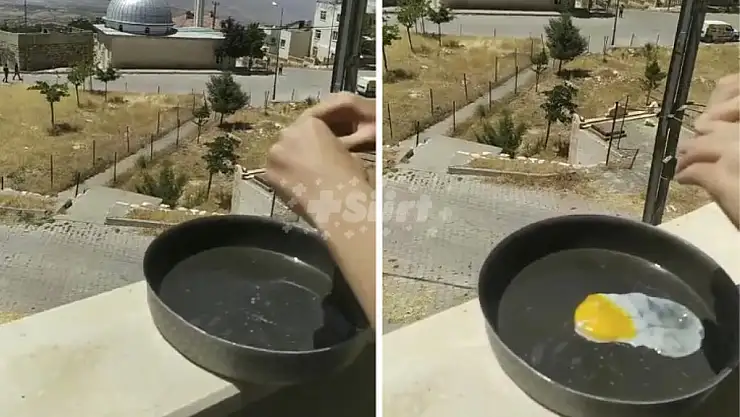 Siirt'te, mevsim normallerinin üzerinde seyreden sıcaklıklarda balkonda unutulan tavada yumurta pişirdiler. Siirt’te yaşanan aşırı sıcaklar, ilginç bir olaya neden oldu. İlimiz Tillo ilçesine bağlı Sinep köyünde Kenan Taş’a ait evin balkonunda unutulan tavada yumurta pişirildi. Kenan Taş, isimli bir vatandaş, kızgın güneşin altında unutulan tavada kızan yağda yumurta pişirdi ve bu anları cep telefonu kamerası ile kaydetti.