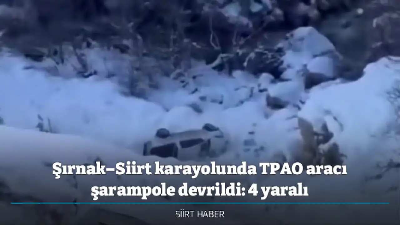 Şırnak–Siirt karayolunda buzlanma nedeniyle kontrolden çıkan Türkiye Petrolleri Anonim Ortaklığı'na (TPAO) ait araç şarampole devrildi. Kazada araçta bulunan 4 personel hafif şekilde yaralandı.