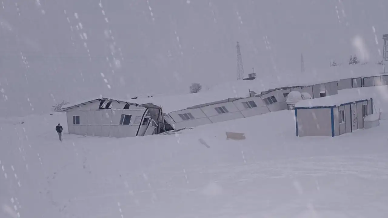Şırnak'ta yapımı süren 500 yataklı bölge hastanesi şantiyesinde, yoğun kar yağışı ve şiddetli rüzgarın etkisiyle konteyner yemekhane çatısı çöktü. Olayda can kaybı ya da yaralanma yaşanmazken, yemekhane kullanılamaz hale geldi.