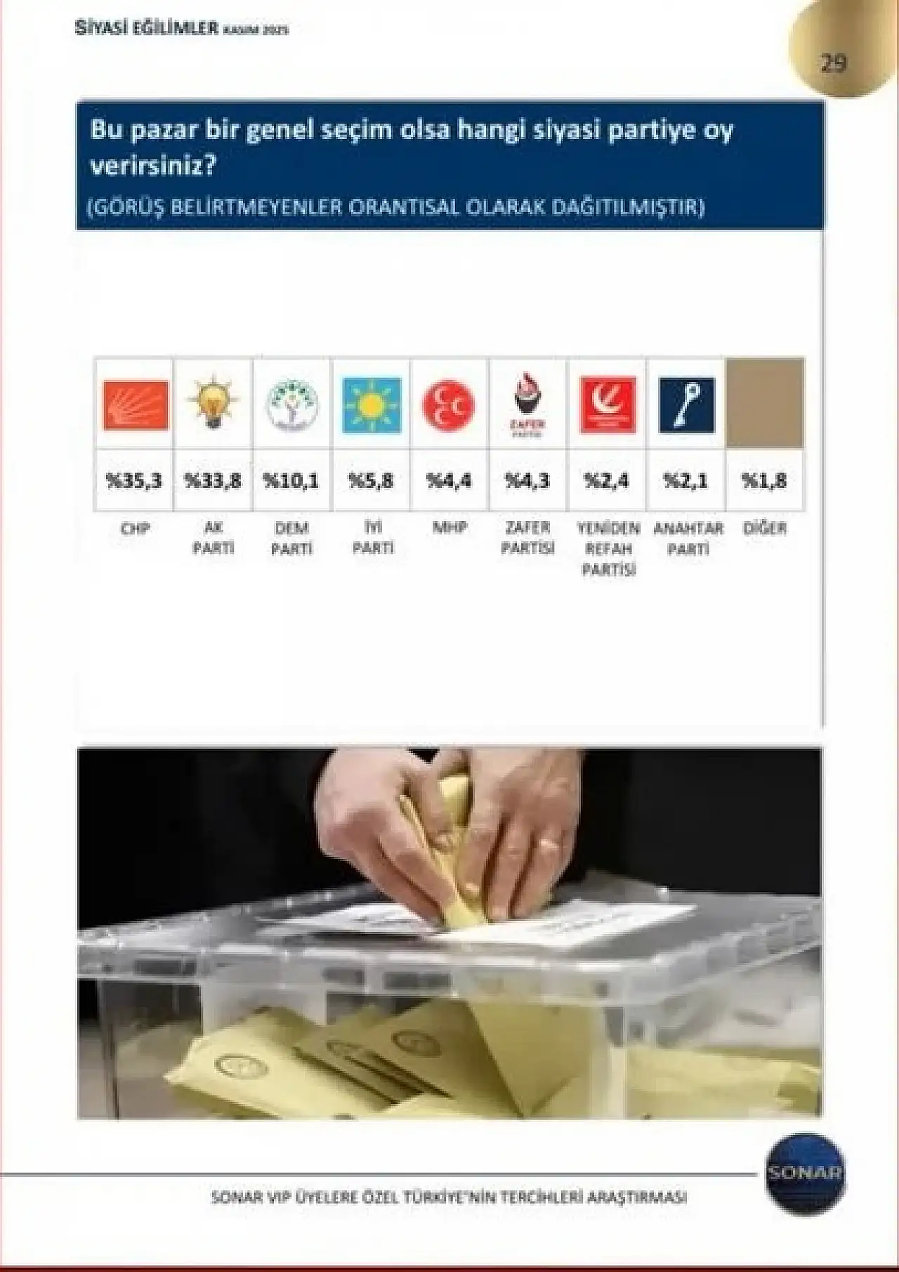 SONAR Araştırma'nın son seçim anketi kamuoyunda büyük yankı uyandırdı.