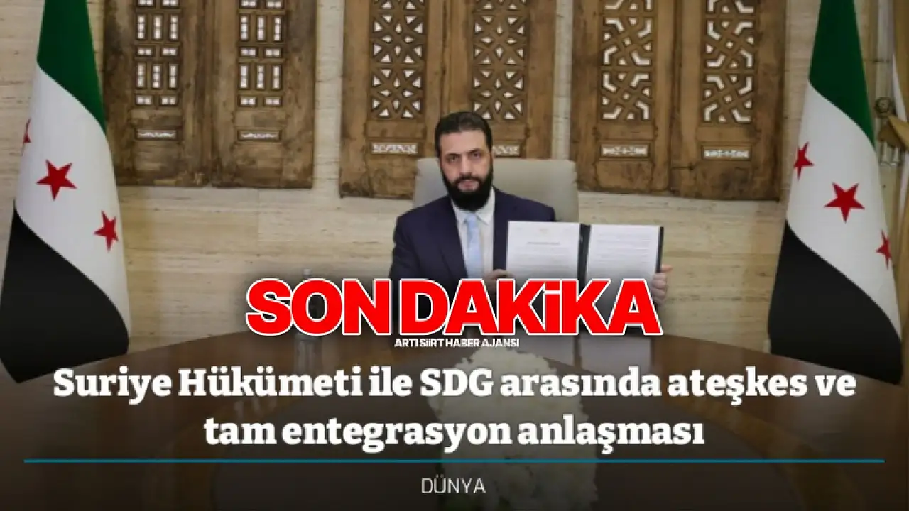 Suriye hükümeti ile Suriye Demokratik Güçleri (SDG) arasında, ülkenin geleceğini doğrudan etkileyecek kapsamlı bir ateşkes ve tam entegrasyon anlaşmasına varıldığı açıklandı. Anlaşma; askeri, idari, güvenlik ve siyasi alanlarda köklü değişiklikler öngörürken, Suriye’nin toprak bütünlüğü ve merkezi devlet yapısının güçlendirilmesini hedefliyor.