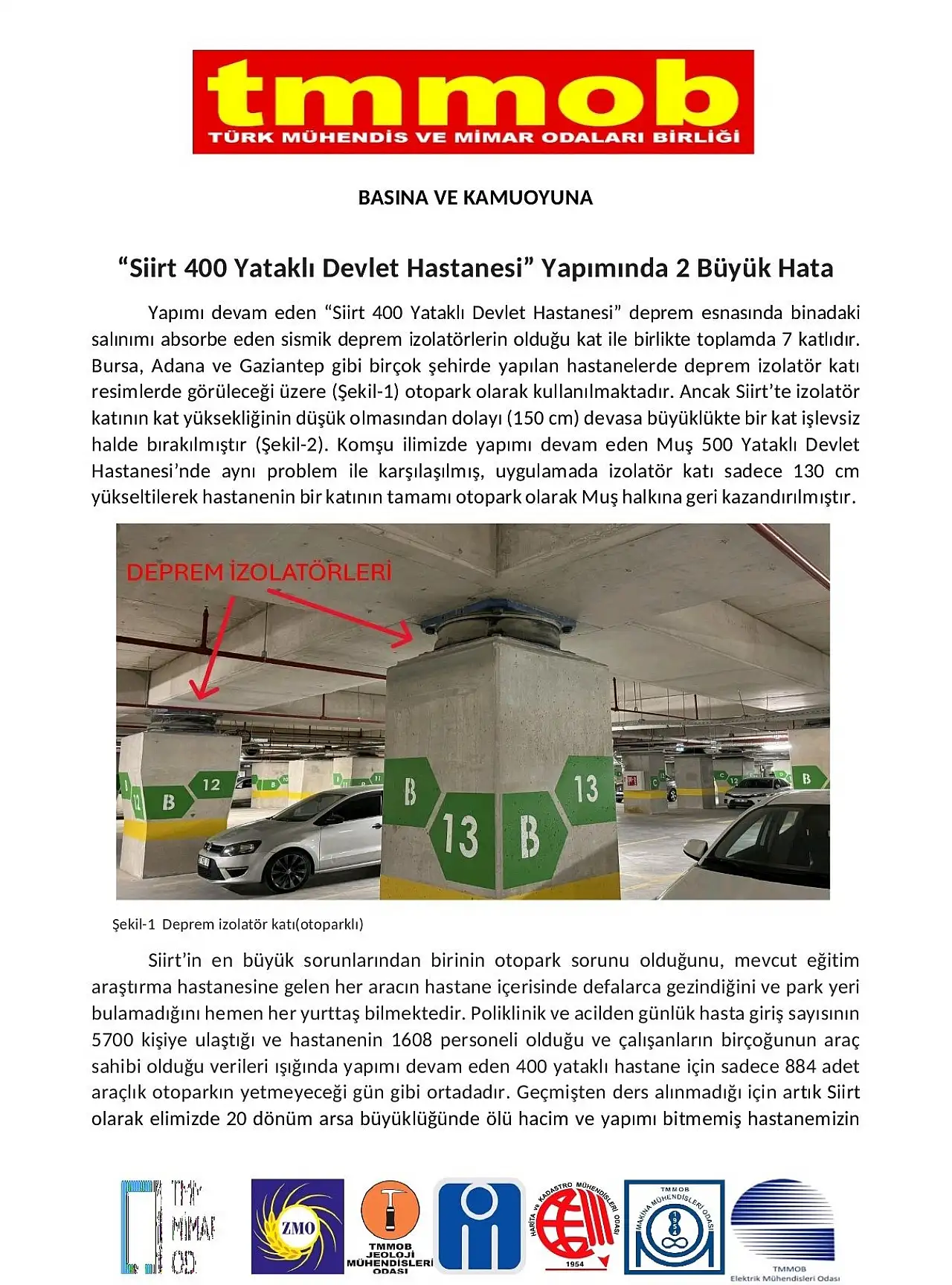Siirt’te mevcut hastanenin en büyük sorunlarından birinin otopark sıkıntısı olduğunu belirten TMMOB, poliklinik ve acilden günlük girişin 5700 kişi, personel sayısının 1608 olduğunu hatırlattı.