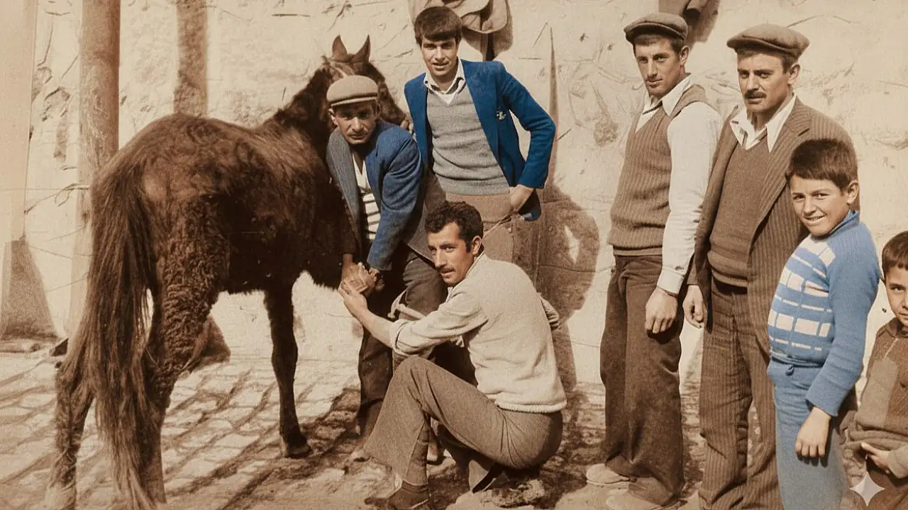 İkinci fotoğrafın ise 1968 yılı ve sonrasına ait olduğu tahmin ediliyor. Nal çakma sırasında çekilen hatıra karesinde; nalı çakan Naci Tokgöz, atın ayağını tutan merhum Bedri Nergiz, yanında Mucir Tokgöz, şapkalı olan Beşir Tokgöz ve Fahri Nergiz görülüyor. Fotoğrafta ayrıca çocuklar Ahmet Bışo ve Emin de yer alıyor.