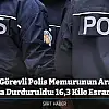 Van İpekyolu İlçe Emniyet Müdürlüğü'nde görev yapan polis memuru Murat Karataş, eşi adına kiralanan araçla şehir dışına çıkarken Siirt’in Baykan ilçesindeki uygulama noktasında durduruldu. Yapılan aramada, araçta 16,3 kilogram esrar ele geçirildi.