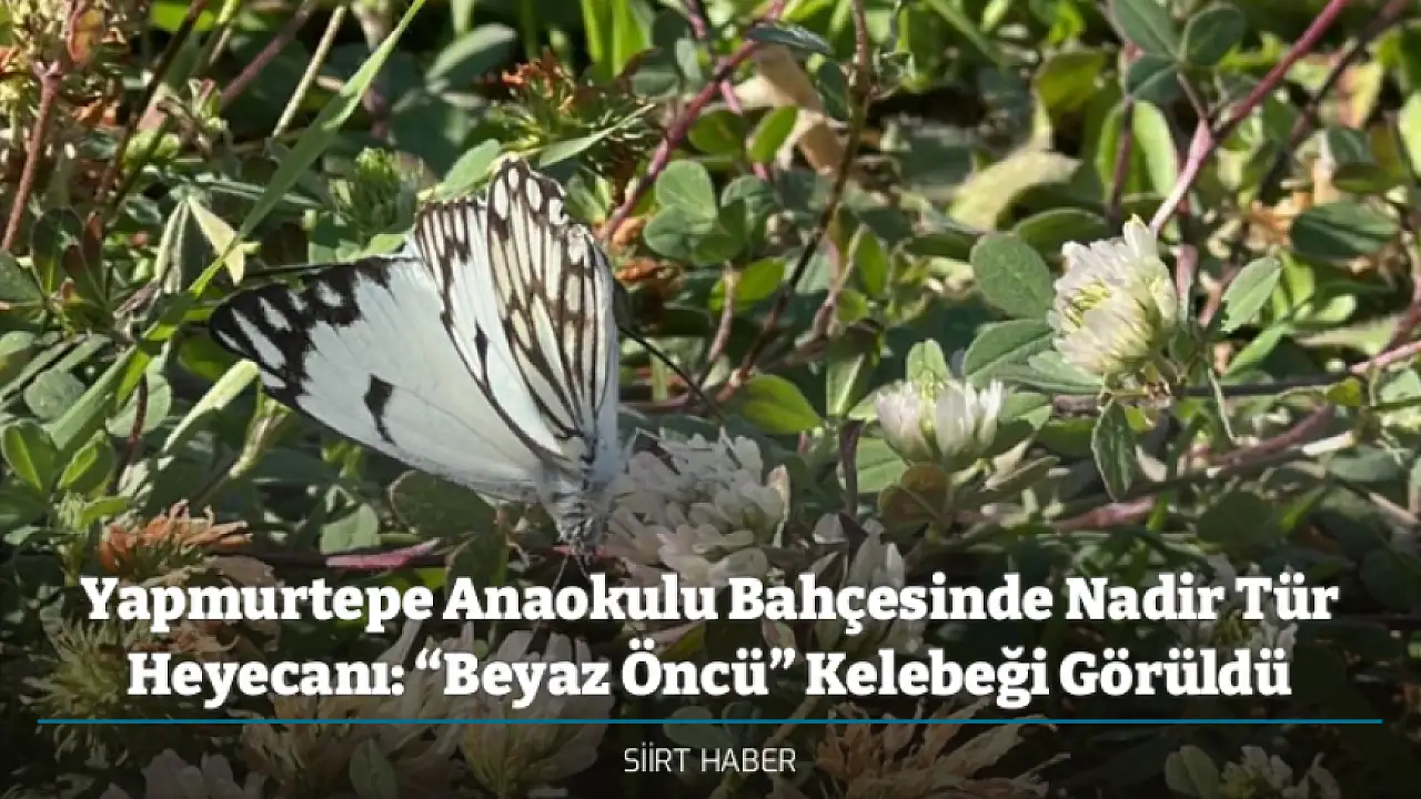 Siirt'in Yapmurtepe köyünde bulunan Yapmurtepe Anaokulu bahçesinde öğretmenler, doğada nadir görülen 'Beyaz Öncü' (Belenois aurota) kelebeğini gözlemledi. Renkli görüntülere sahne olan bu an, minik öğrencilerde büyük bir heyecan ve merak uyandırdı.